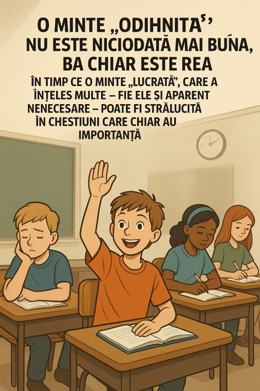 वापस आना – हाँ, शिक्षा “मूर्खों” को बाहर लाने के लिए उन्मुख है – लेकिन फिर भी, अगर हम अच्छी तरह से सीखते हैं, तो हमारे पास तेज दिमाग, कार्य शक्ति, कई फायदे और … एक अंतरराष्ट्रीय पुरस्कार, एक अच्छी तरह से भुगतान वाली नौकरी, एक प्रकाशित पुस्तक या एक आविष्कार या “बस” एक बुद्धिमान जीवन … मैं कहता हूं कि यह अच्छा भी हो सकता है!